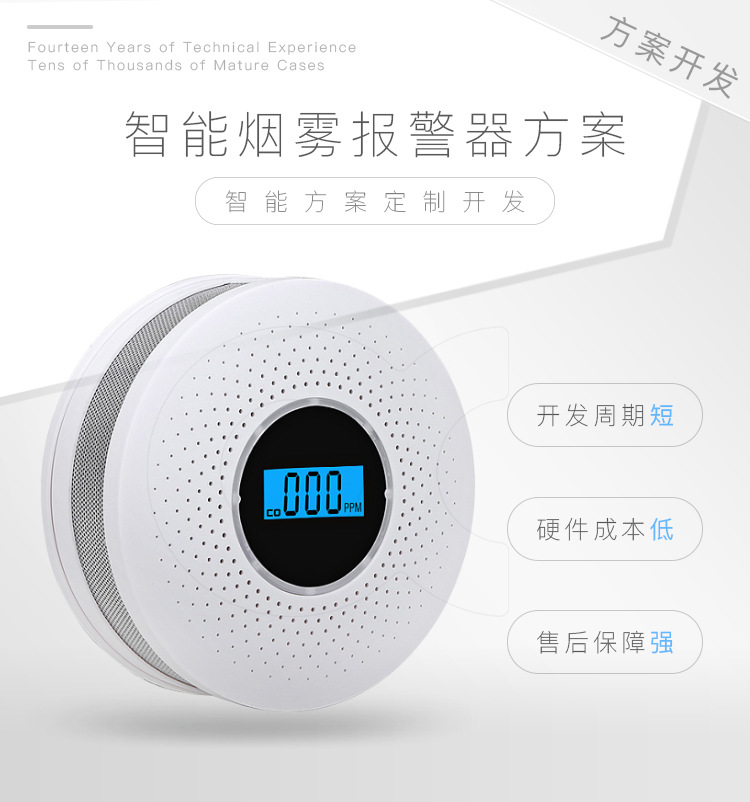 烟雾报警器内含蜂鸣器,一旦检测到烟雾以及火灾危险,探测器红色LED指示灯就会马上闪烁,同时发出超过八十分贝的报警提示声。